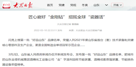 歷經(jīng)多年的拼搏創(chuàng)新,金塔已經(jīng)成為規(guī)模化、成套化、技術(shù)化及節(jié)能化的酒精生產(chǎn)及廢液處理裝備專業(yè)制造商,是《酒精蒸餾塔》 《糠醛水解鍋》《糠醛蒸餾塔》等國家行業(yè)標(biāo)準(zhǔn)的制定者。以“金”字為商標(biāo)的酒精生產(chǎn)及其節(jié)能環(huán)保設(shè)備是國內(nèi)客戶尤其是知名大型酒業(yè)公司信賴的品牌,與中國酒業(yè)的龍頭企業(yè) 五糧液集團三次合作,深得好評和信賴,與天冠集團、阜豐集團、吉良集團等大型燃料乙醇巨頭攜手,推動了燃料乙醇技術(shù)裝備的進步,向國內(nèi)28個省市區(qū)近2000家客戶提供了產(chǎn)品和技術(shù)服務(wù),建立了深厚的合作基礎(chǔ),并出口東南亞、東歐、非洲、南美等多個國家。